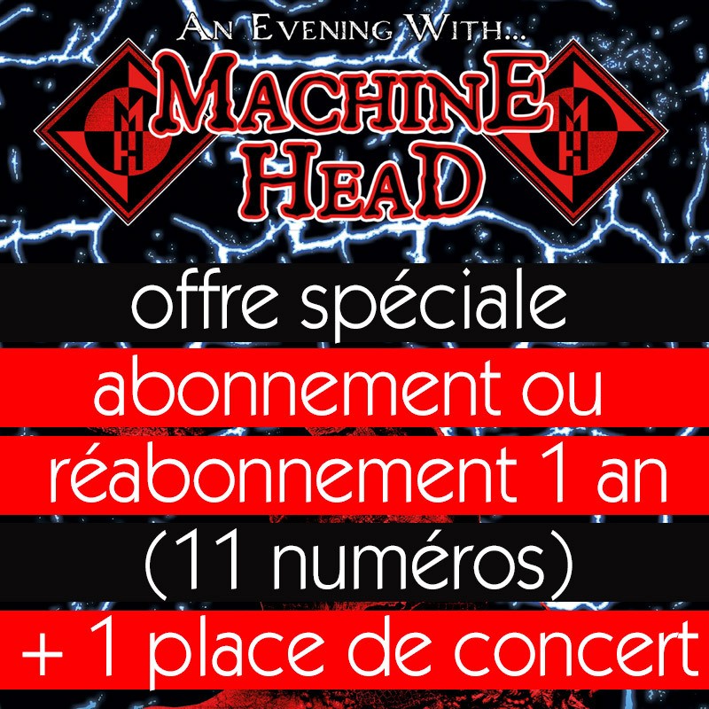 L’abonnement au magazine comprend 11 numéros + 1 place de concert pour MACHINE HEAD dans une des villes suivantes en placement libre : Marseille, Toulouse, Paris et Strasbourg (tourneur AEG).